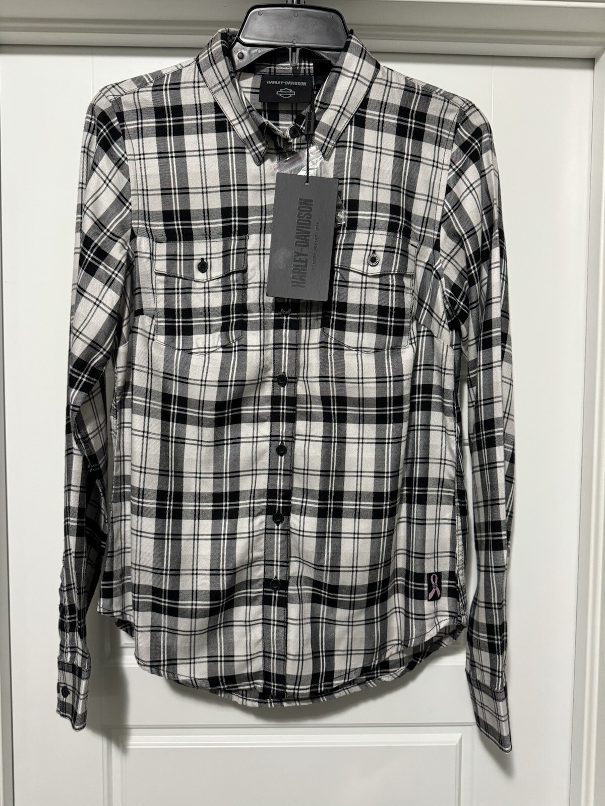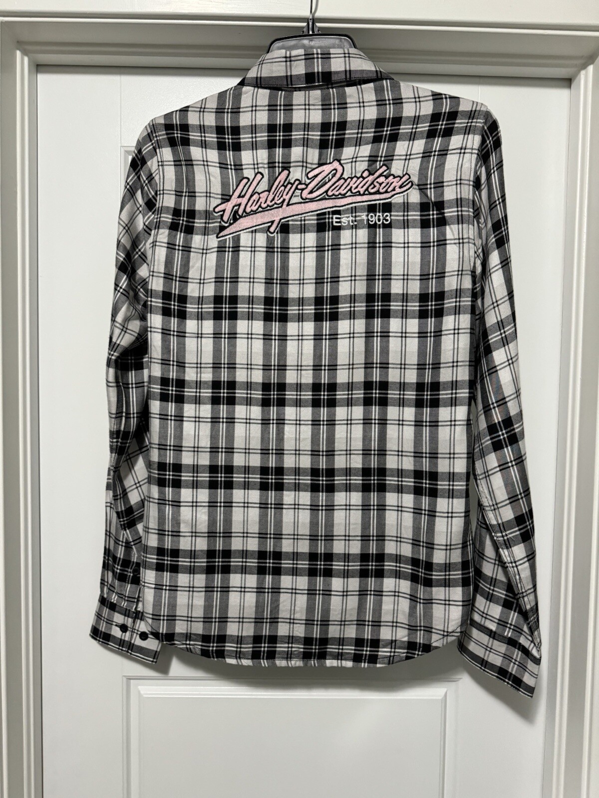 This Harley-Davidson women’s plaid soft flannel in pink features the Harley logo and is a practical casual layer for everyday wear. Condition is new with tags. Free shipping is included, making it easy to order without added delivery costs. Check the listing for details on sizing, fit, fabric content, closures, and care instructions, as these specifics can vary by style. If you’re looking for a Harley-Davidson flannel shirt with a classic plaid look, this piece is a straightforward option.
